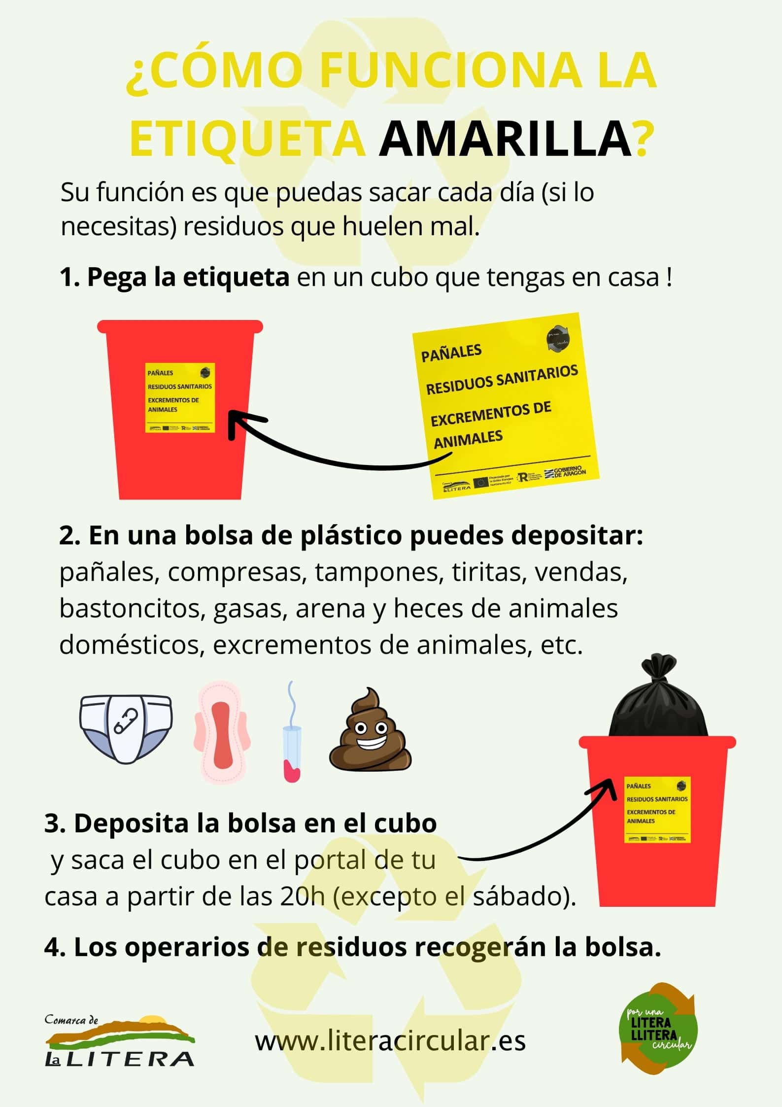- Los residuos sanitarios (pañales, compresas, etc.) y los excrementos de animales, al ser residuos que se acumulan diariamente y pueden generar malos olores, se depositarán cada día que haya recogida, en una bolsa separada e identificada con el adhesivo correspondiente.